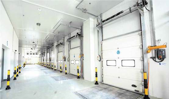 • 在冷库项目运营过程中,每个角落都可能出现潜在的能量损耗。在装卸站台上,普通装卸平台位于保温滑升门下方,装卸平台与基坑之间的缝隙、暴露于室外的平台底部、装卸货时冷藏货车与冷库之间的密封问题等,都会导致能量外泄,直接导致成本增加。效率低下的普通冷库门更是能量损耗的主要来源。