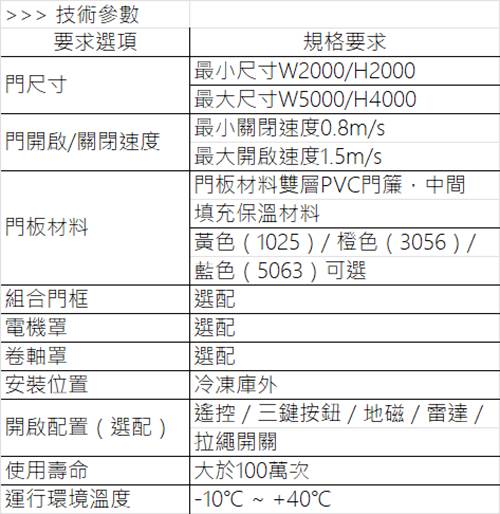 • 选择适合的高速、抗撞击、低故障率及耐用的冷库门迫在眉梢。